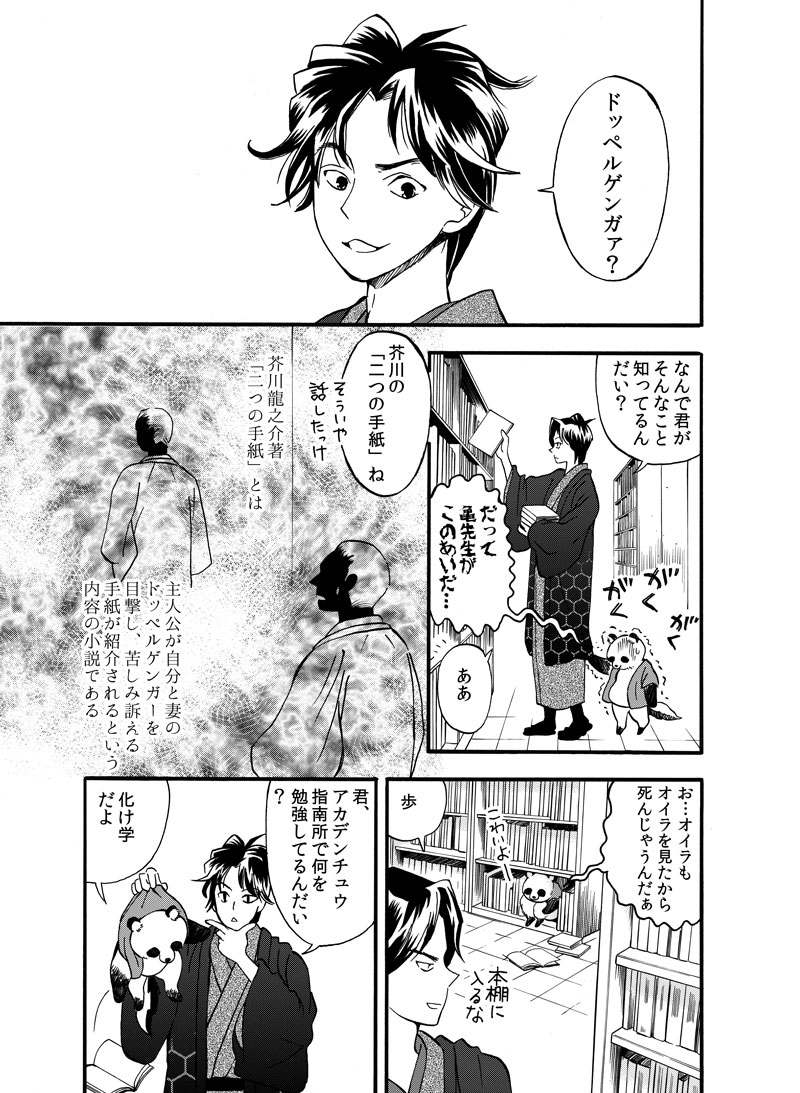 A5・全52P・表紙はマット加工 アカデンチュウは赤い殿中羽織(袖なしの羽織)がトレードマークの化学指南所の生徒です。主人公のアホな歩(あゆむ)とおぼっちゃんな香(きょう)ちゃんと、できる男銀ちゃんがメインのアカデンチュウです。 詳しくはこちら